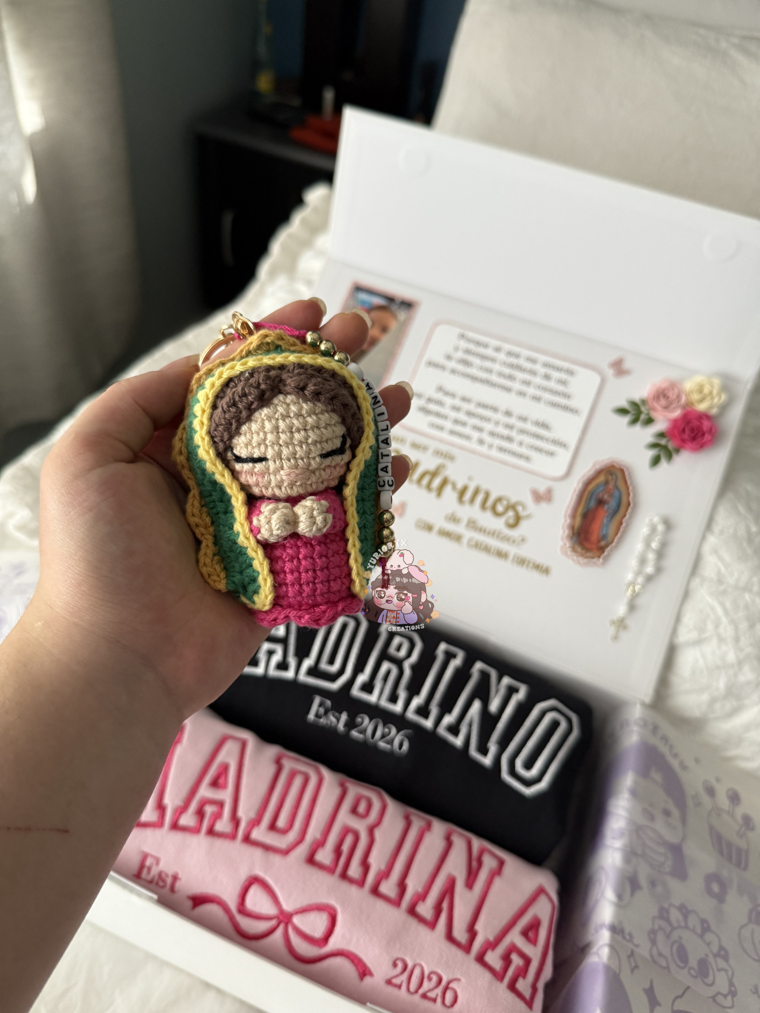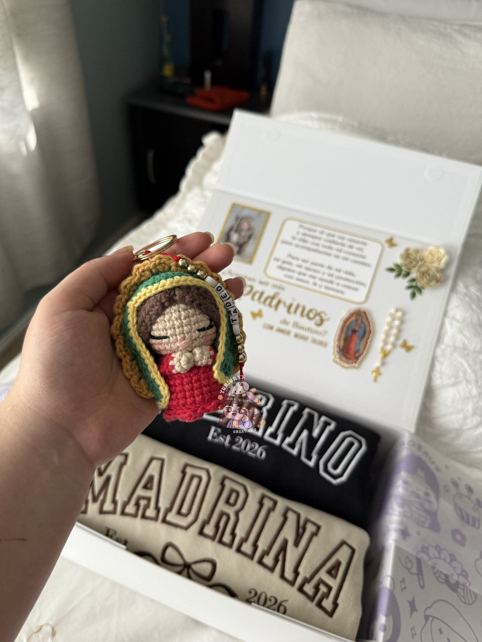 - Every order for a box proposal will include a free crochet virgencita keychain made by me 🥹 as a thank you!