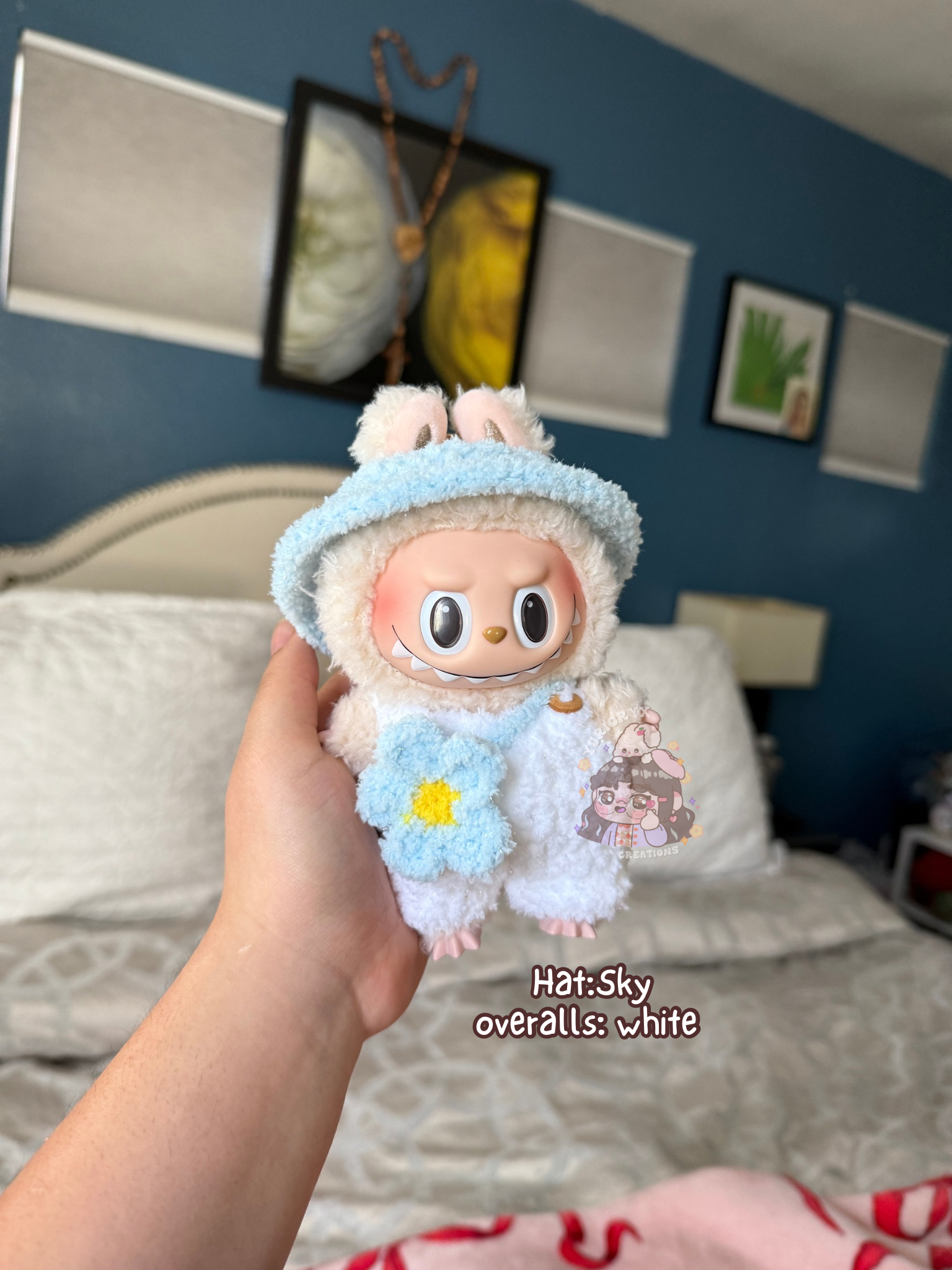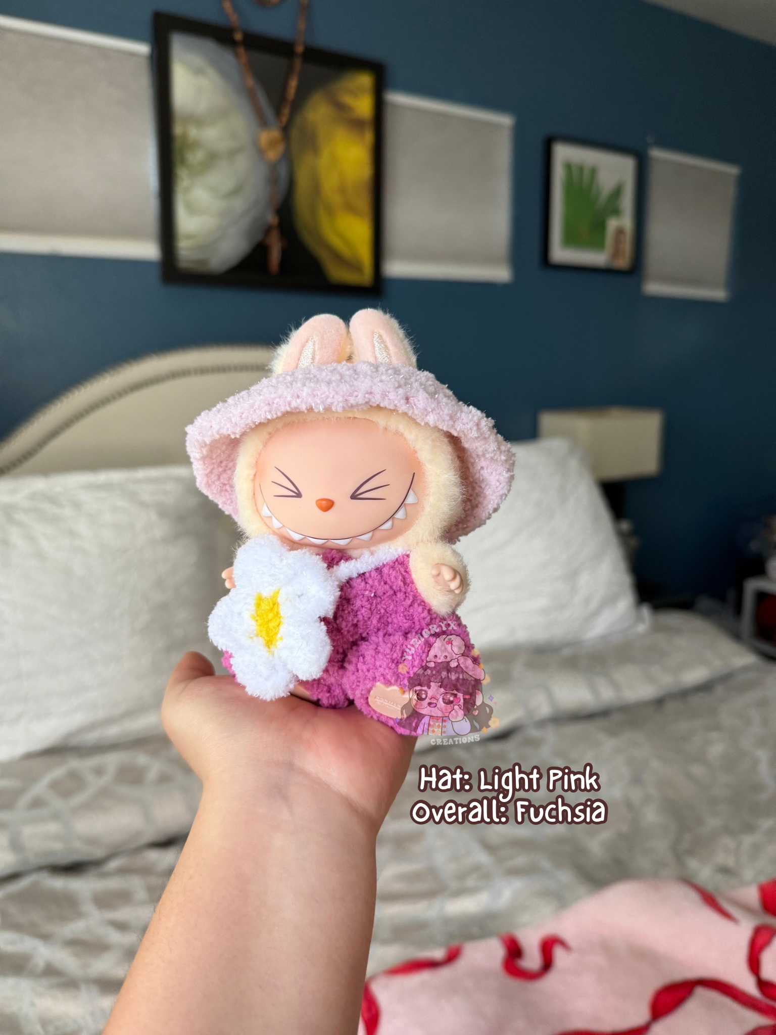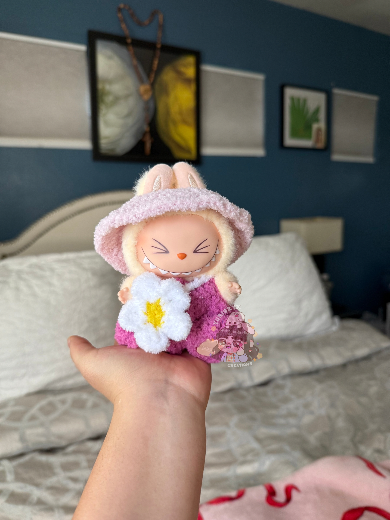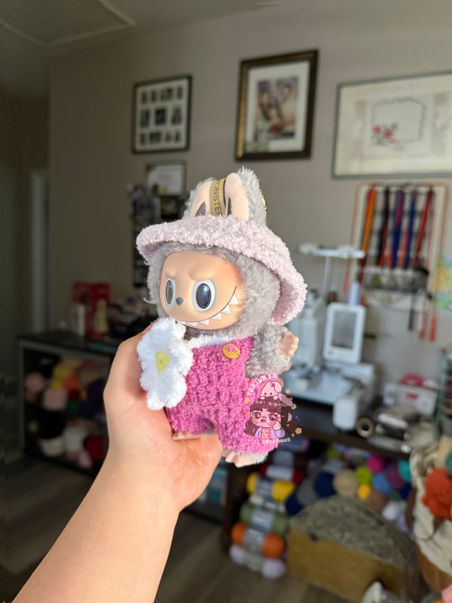 Dress up your fellow monster with a fluffy overalls and flower bag 🩷 handmade specially for youuuu!