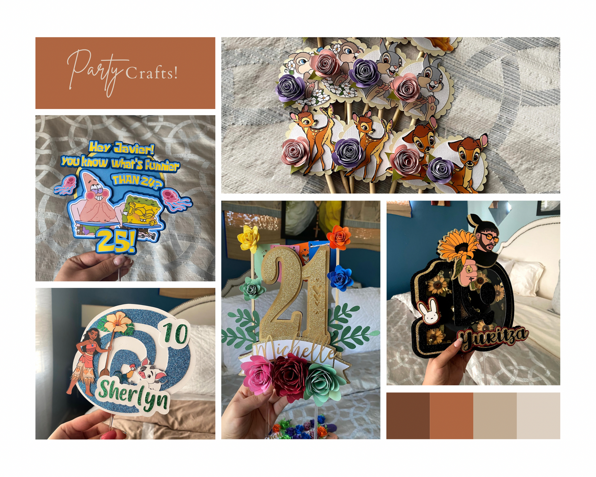 Cake toppers, invitations, cupcake toppers, and party favors and etc all made by hand and with tons of love!